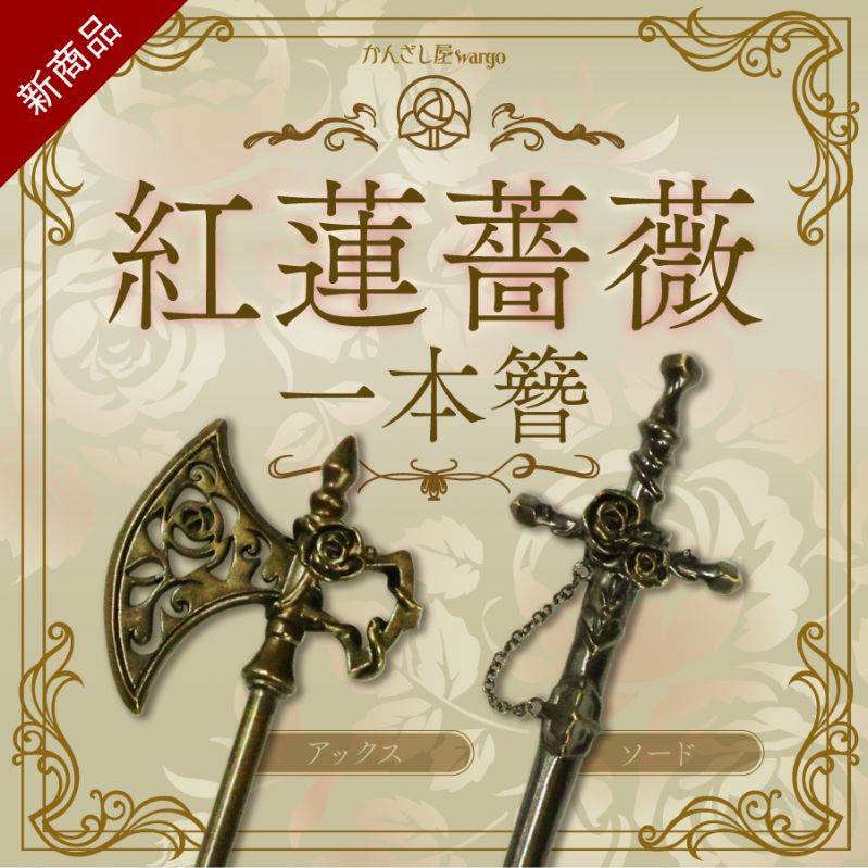高貴に咲き誇る薔薇と、鋭く気高い武器。相反する二つのモチーフが融合した、待望のアンティーク調簪。