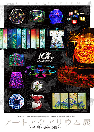 今年で10周年となるアートアクアリウム展は古くから日本人に馴染みのある金魚にスポットを当てた水中アート展。 総合プロデュースはアートアクアリウムプロデューサーとして有名な木村英智氏。様々な演出の中で金魚が舞い踊る展示は毎年大好評。 金沢は金沢21世紀美術館での開催となり、水中アート展が公立美術館で開催されるのは、これが初。画家・俳優の片岡鶴太郎さんとのコラボレーション作品などが製作されるそうです。