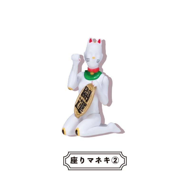 招き猫+マネキンを融合させた「マネキンネコ」。江戶時代から伝わるとされているコミカルなデザインが特徴の招き猫に、あえてマネキンの美しいプロポーションを組み合わせた斬新なフィギュア。ラインナップは寝そべりマネキ、座りマネキ1、座りマネキ2、女豹マネキ、座りマネキ3、さらにネタ感強めの秘シークレットを加えた全6種。招き猫のトレードマークである小判もマネキンのポーズに合わせて使いこなしており、見れば見るほどクスクス笑える仕上がりに。またマニュキュアなど細かい部分も手を抜くことなく表現しており、ただのおもしろフィギュアではなく縁起物として飾りたくなるような独特の雰囲気を匂わせるフィギュアとなっています。価格は1回300円。