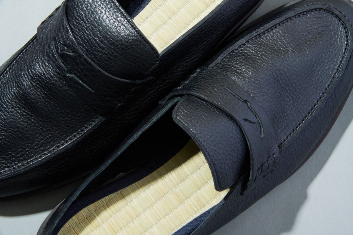 「畳ローファースリッパ」は、吸湿性・吸臭性・抗菌性等に優れた日本の伝統素材・畳(九州産)をインソールに使用した、リラクシーなスリッパタイプのローファーです。ミモザ等の植物由来のベジタブルタンニンで鞣した、「日本エコレザー基準(JES)」に適応する国産エコレザーを使用しており、厳選素材を日本有数の靴産地・奈良の職人のハンドメイドで仕立てています。