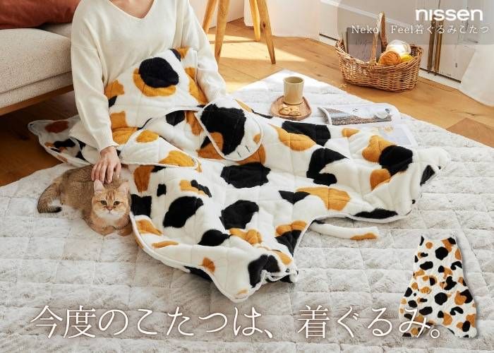「猫×こたつ×着ぐるみ」という、これまでにない新しい発想から誕生。猫はこたつに入るとなかなか出てこない……あの至福を人間が“着て”持ち運べたら暖かそう という妄想が膨らみ、形になった商品です。