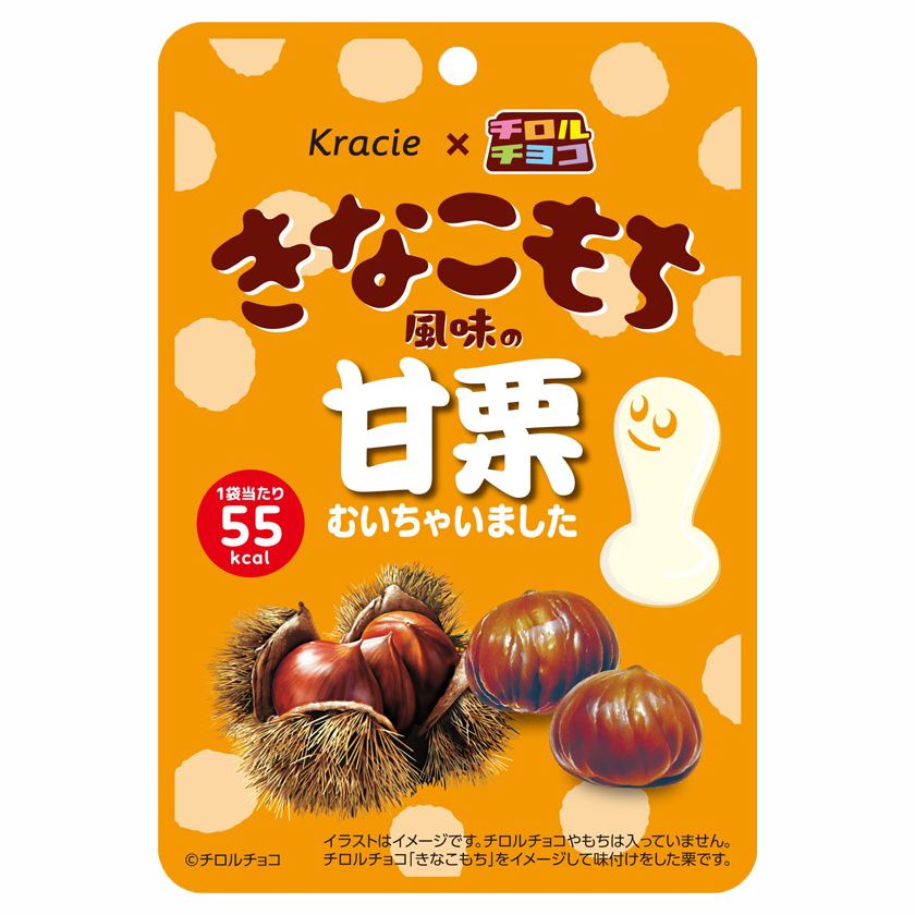 ロングセラー商品「甘栗むいちゃいました」シリーズより、チロルチョコの人気商品「きなこもち」とコラボレーションした新商品「きなこもち風味の甘栗むいちゃいました」