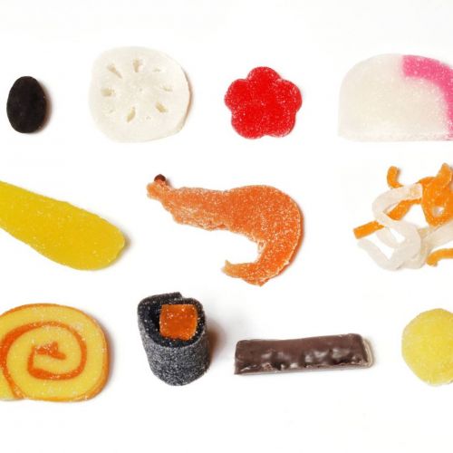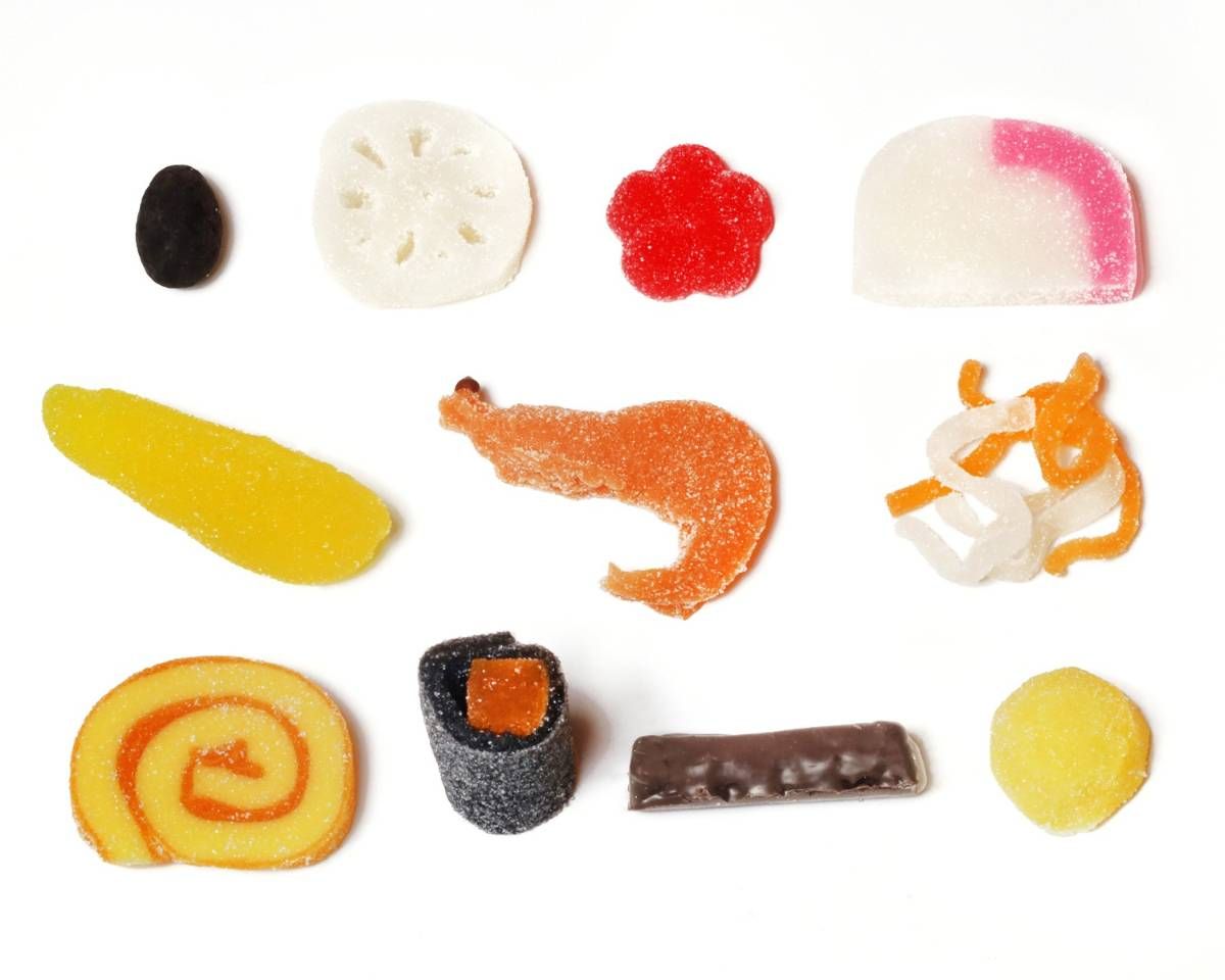 細く切ったり、巻いたり、重ねたりと、職人の手仕事によって一つひとつ丁寧に仕上げた「グミおせち」は、本物と見間違えるほどのリアルな仕上がりが魅力です。