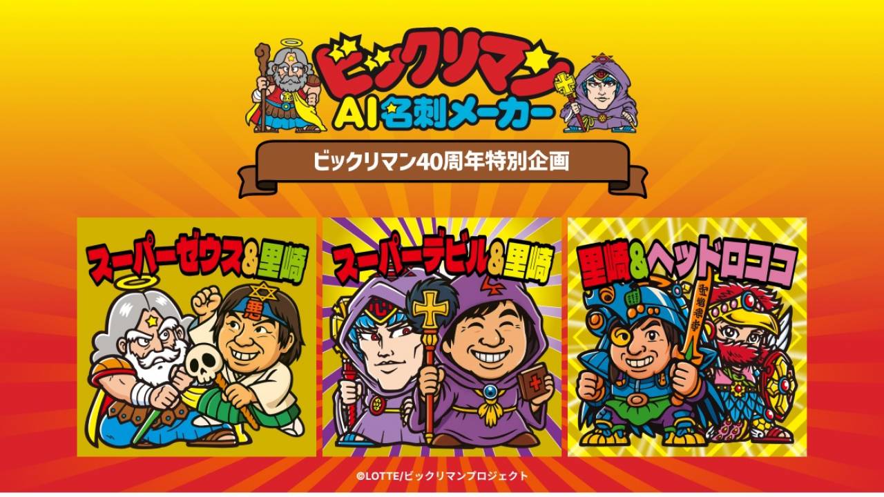 「ビックリマンAI名刺メーカー」では、ユーザーが自身の顔写真をアップロードすると、生成AIがビックリマンの世界観にあった画像に変換します。