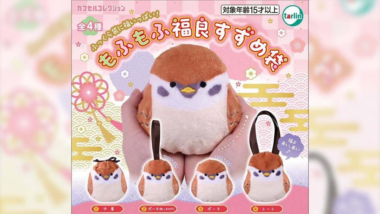 愛らしい“福良すずめ”たちがモフモフの巾着やポーチになったよ♪『もふもふ福良すずめ袋』新発売