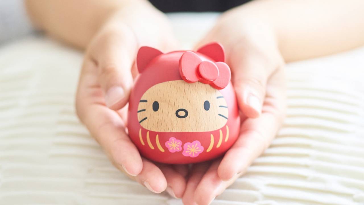 温かみのある木製で作られたサンリオのハローキティのだるま「ハローキティ 木製だるま」
