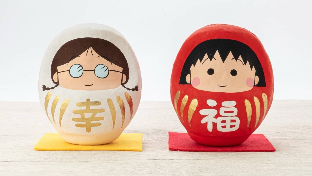 今回、まる子とたまちゃんが 高さ約9cmの手のひらサイズの「だるま」になりました。