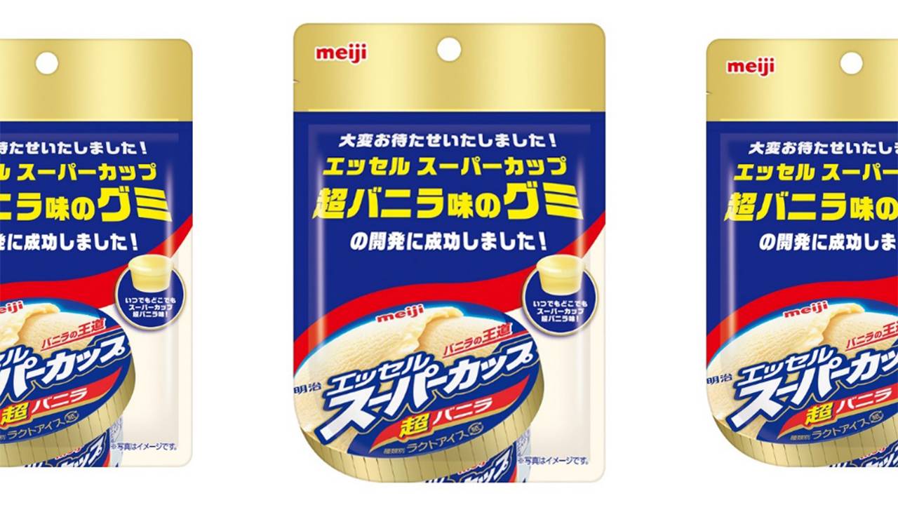 「明治 エッセル スーパーカップ 超バニラ」の味と形状を再現したグミ「エッセルスーパーカップ超バニラ味グミ」