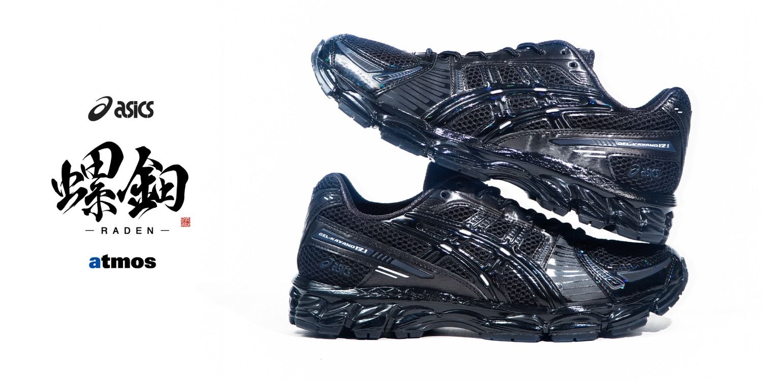 日本の伝統工芸「螺鈿(らでん)」から着想を得たatmosの別注モデル『GEL-KAYANO 12.1 “RADEN(螺鈿)”』。