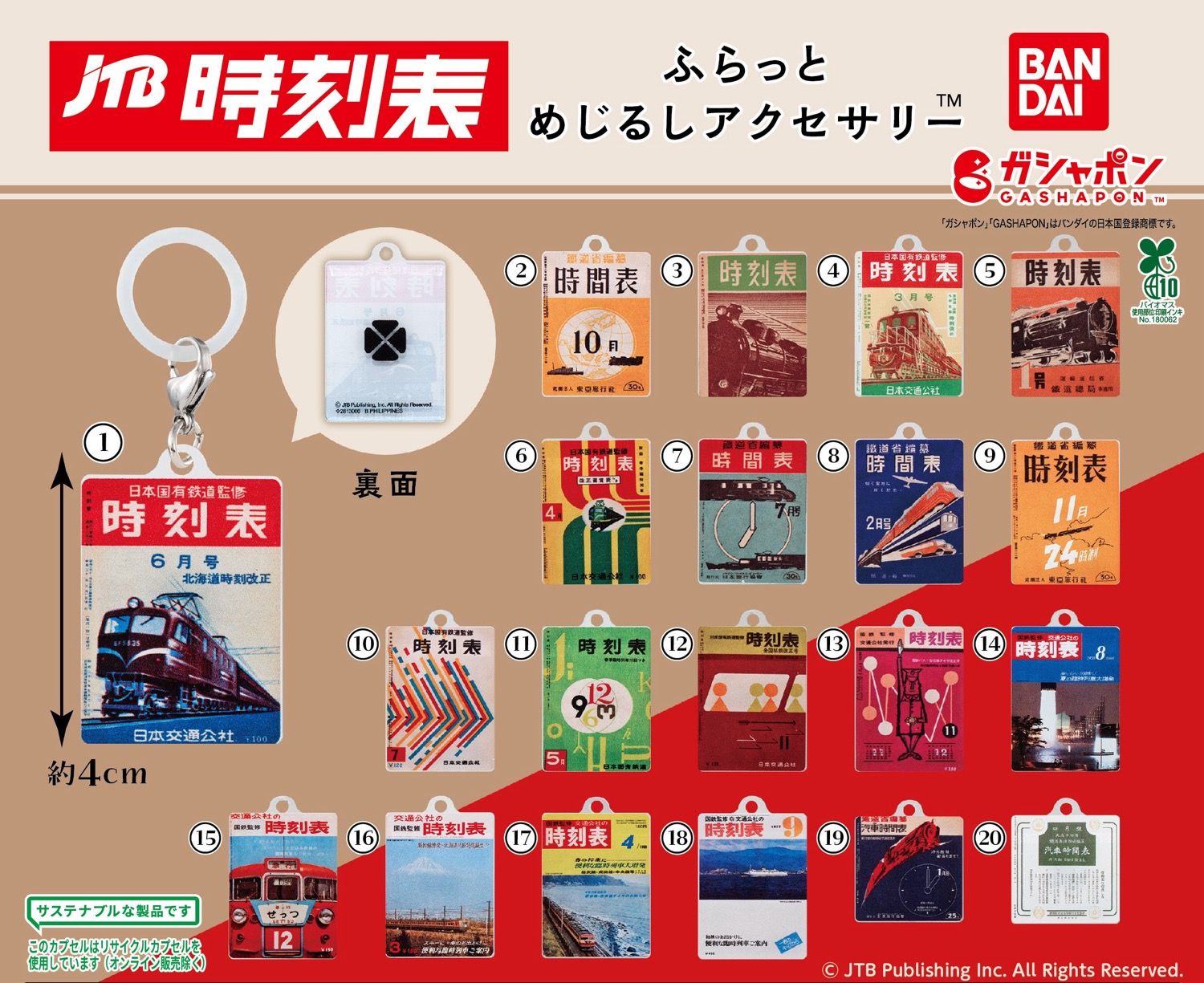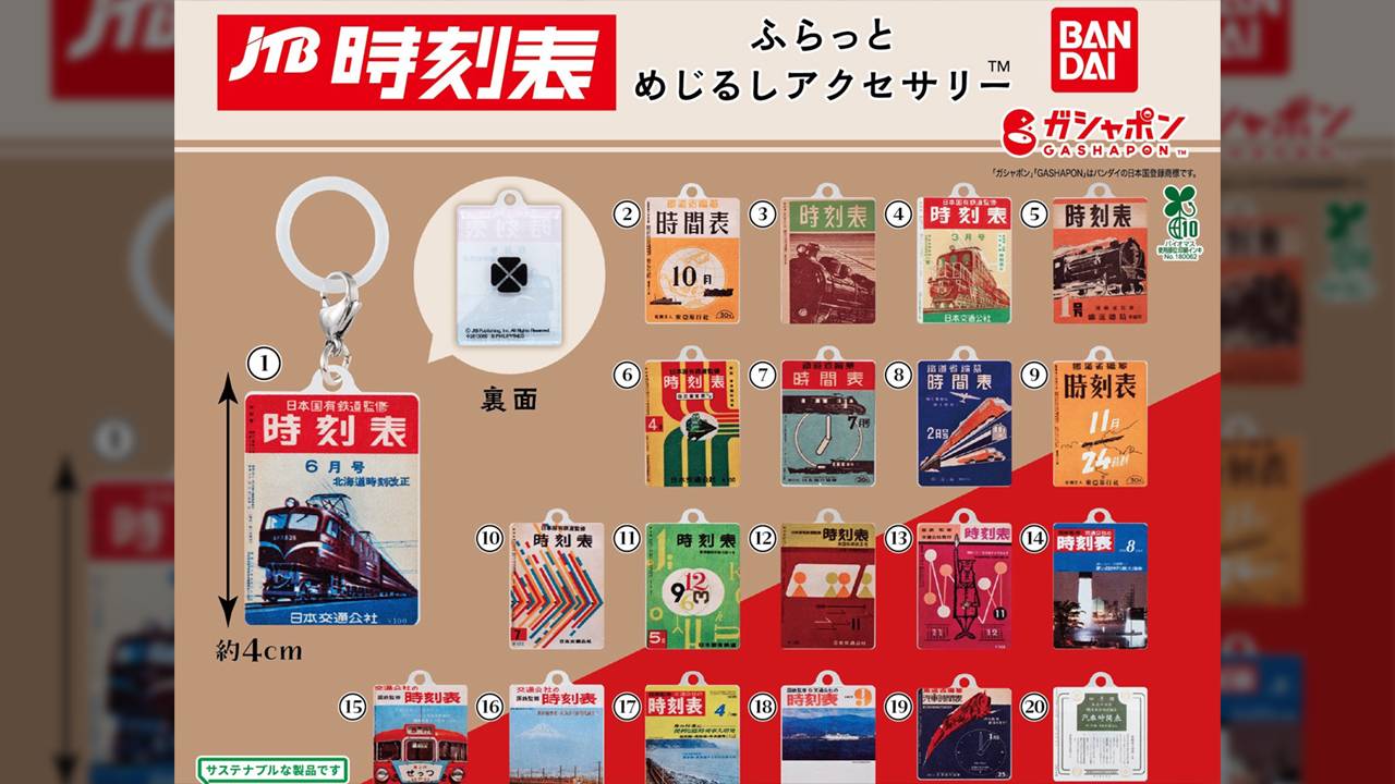 創刊100年の歴史を誇る『JTB時刻表』の歴代表紙のなかから全20種をデザインした「JTB時刻表 ふらっとめじるしアクセサリー™」