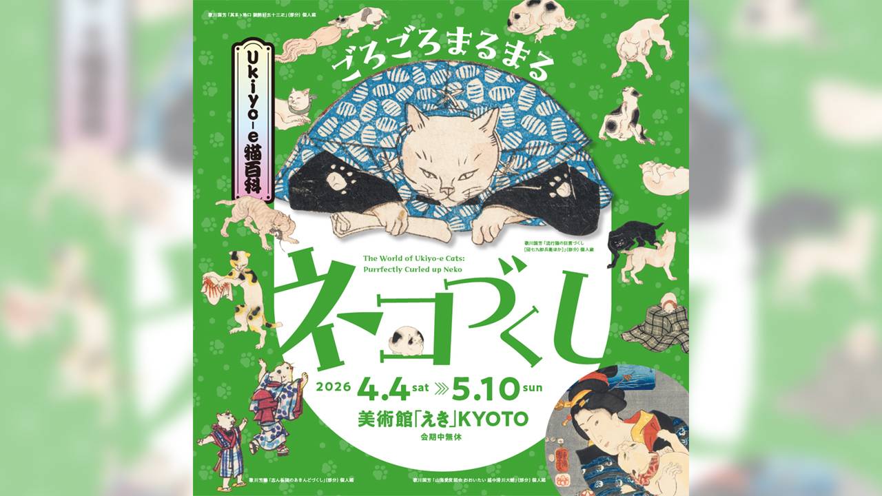 浮世絵版画に描かれた猫の作品をとおして、猫の生態や歴史、人間とのかかわりにスポットを当て、現代にも通ずる、昔から変わらない猫たちの姿を紹介する「Ukiyo-e猫百科 ごろごろまるまるネコづくし」展