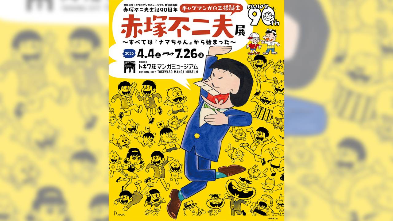 東京・豊島区のトキワ荘マンガミュージアムで開催される、特別企画展 赤塚不二夫生誕90周年 「ギャグマンガの王様誕生 赤塚不二夫展~すべては『ナマちゃん』から始まった~」。