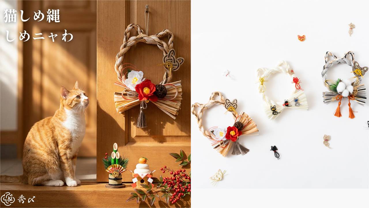 猫をモチーフにしたしめ縄飾り「しめニャわ」