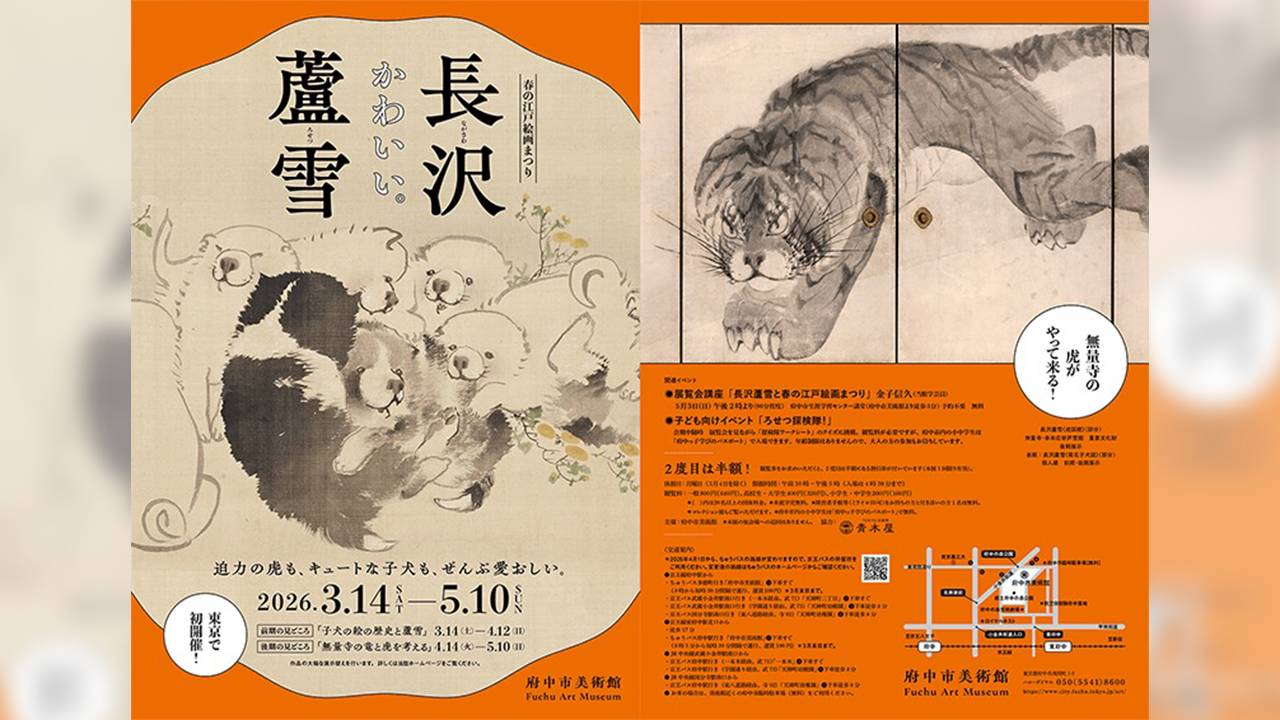 府中市美術館では2001年秋に「司馬江漢の絵画 西洋との接触、葛藤と確信」を開催し、その後、2005年の「百花の絵」以降、毎年春に江戸絵画を中心とする展覧会を開催してきました。都立府中の森公園の桜や若葉とともに春の風物詩としてお楽しみいただけたら、との願いもあり、途中から「春の江戸絵画まつり」と呼ぶようになりました。このシリーズは今回で幕を下ろしますが、シリーズに欠かせなかった画家の一人が、江戸時代中期の画家、長沢蘆雪です。