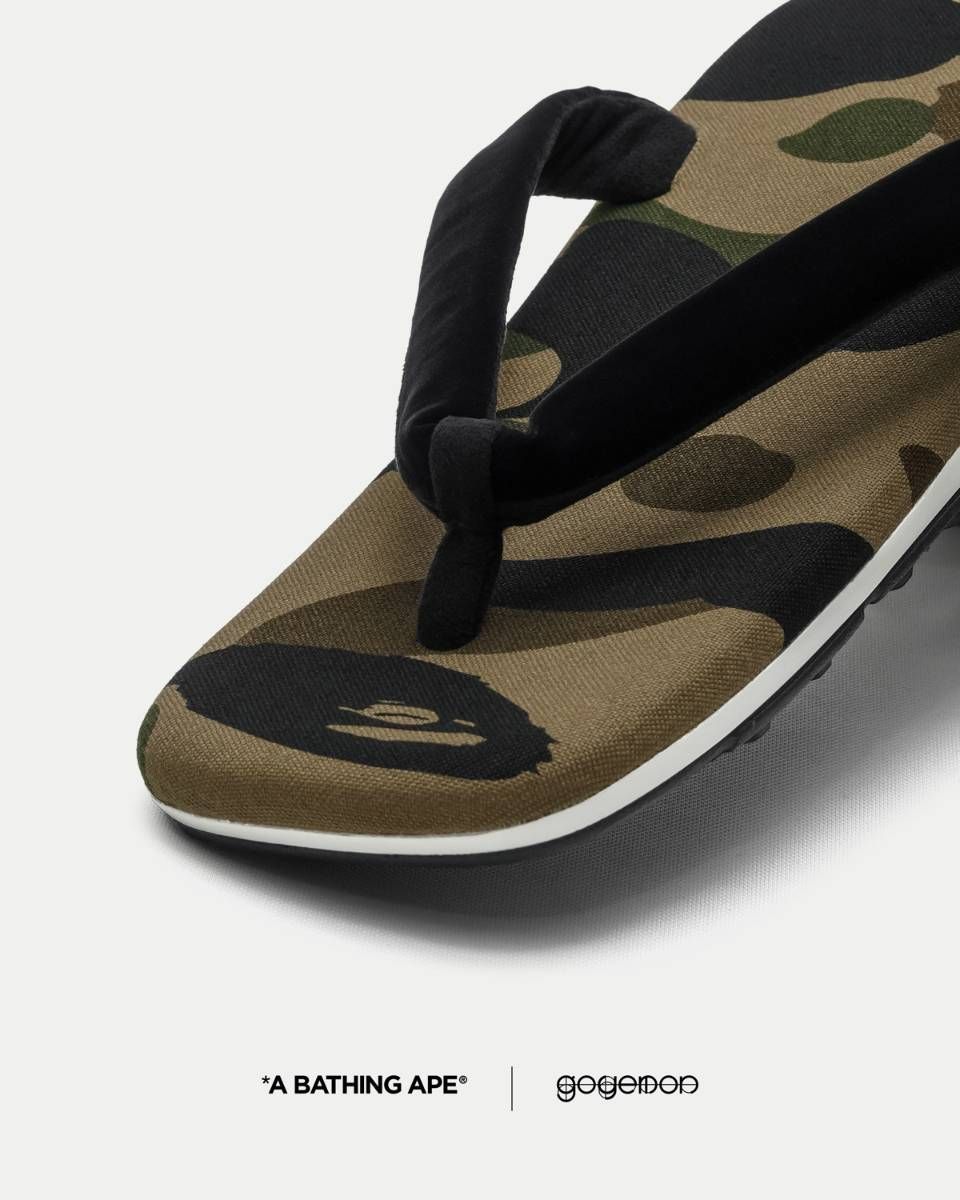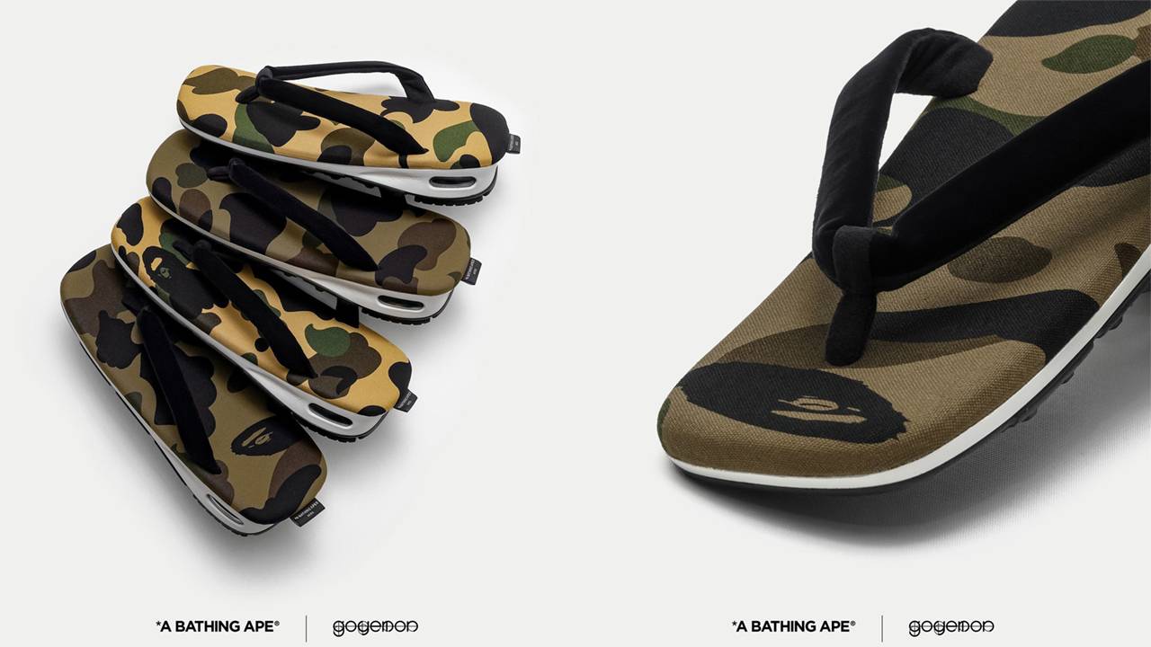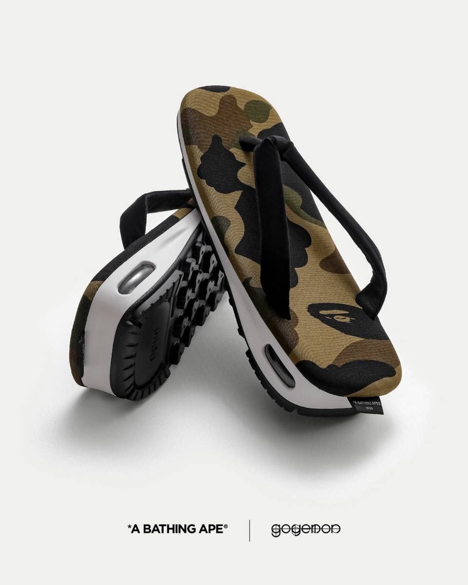 A BATHING APE®(ア ベイシング エイプ®︎)と、日本のプロダクトデザインチーム「goyemon(ごゑもん)」のフットウェア「unda(雲駄)」のコラボレーションモデル第2弾。