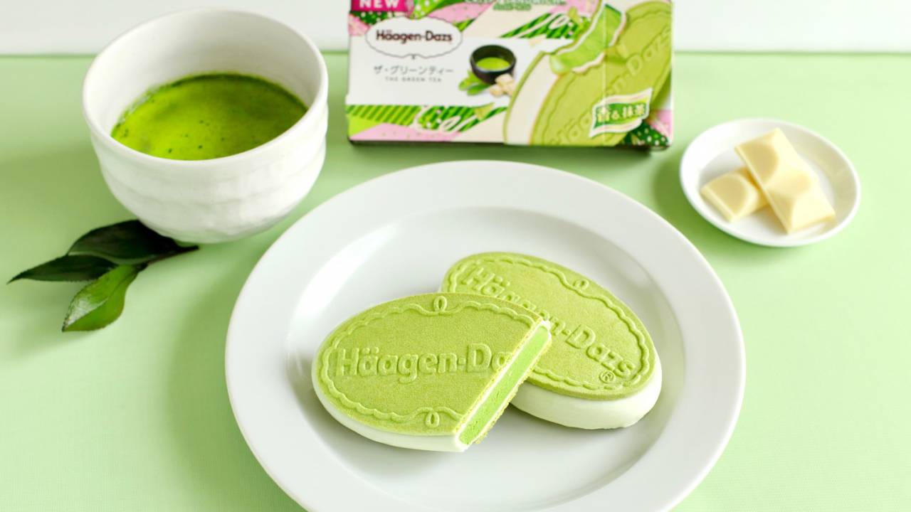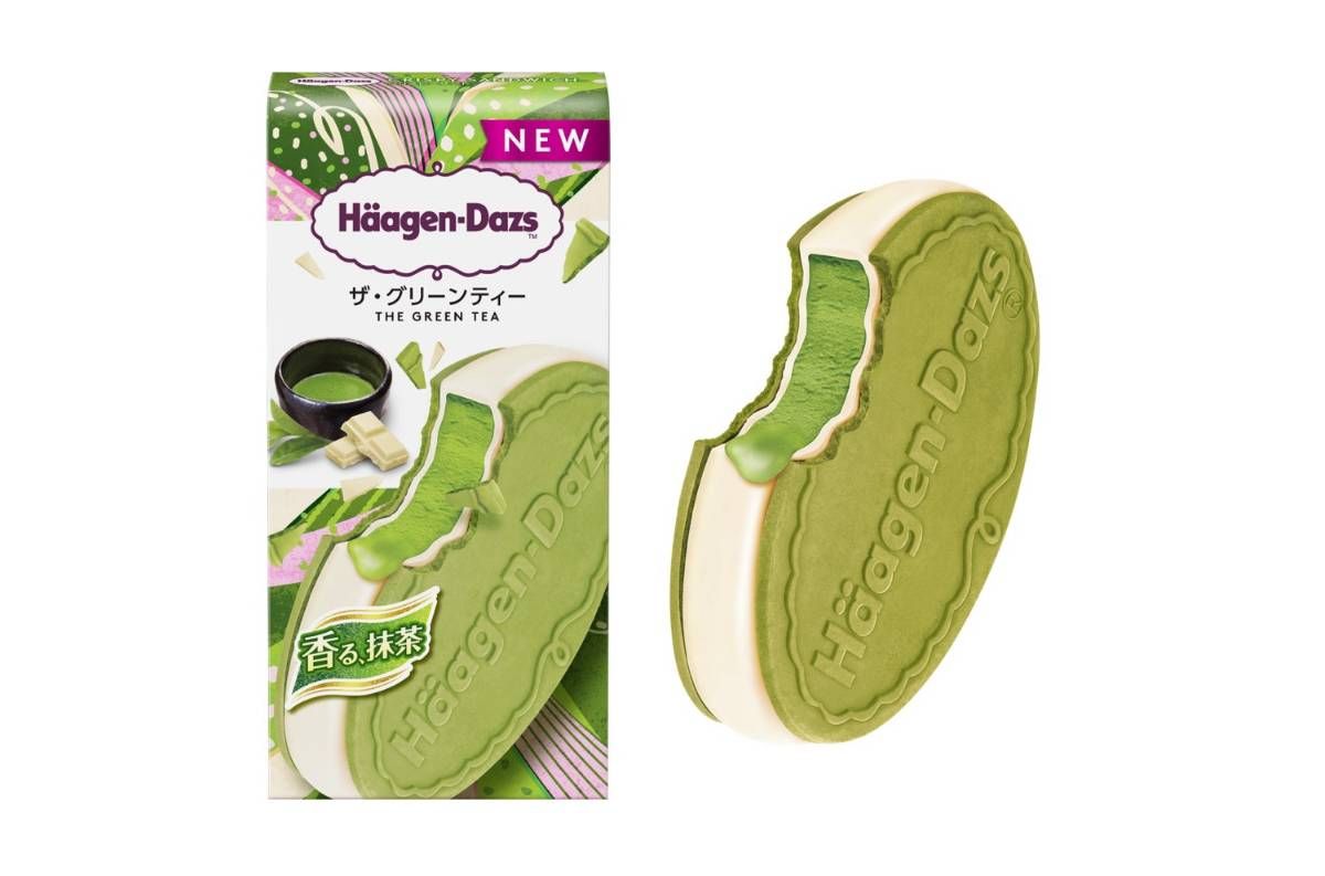 抹茶アイスクリームに、やさしい甘さのホワイトチョココーティングを合わせ、香ばしい抹茶ウエハースでサンドした、ハーゲンダッツ クリスピーサンド 「ザ・グリーンティー」。